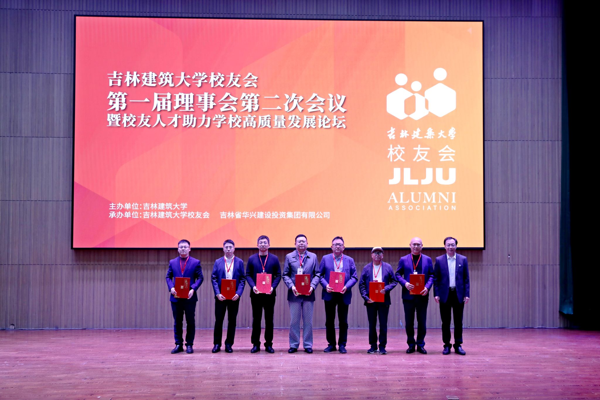 开幕式前,吉林建筑大学校友会第一届理事会召开第二次会议,审议增补学校校友会副会长、副秘书长等相关事宜,张学建作校友会工作总结。
