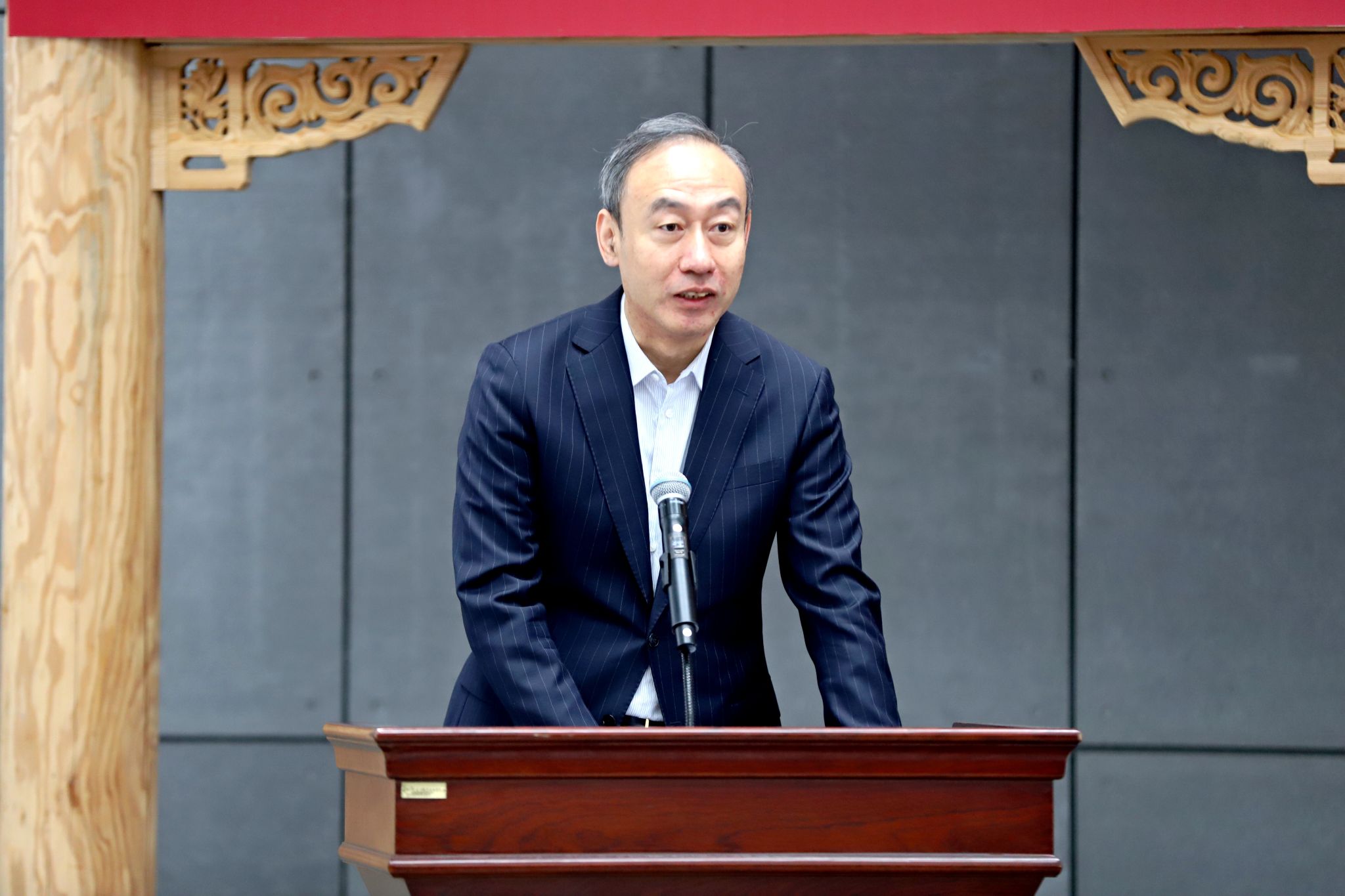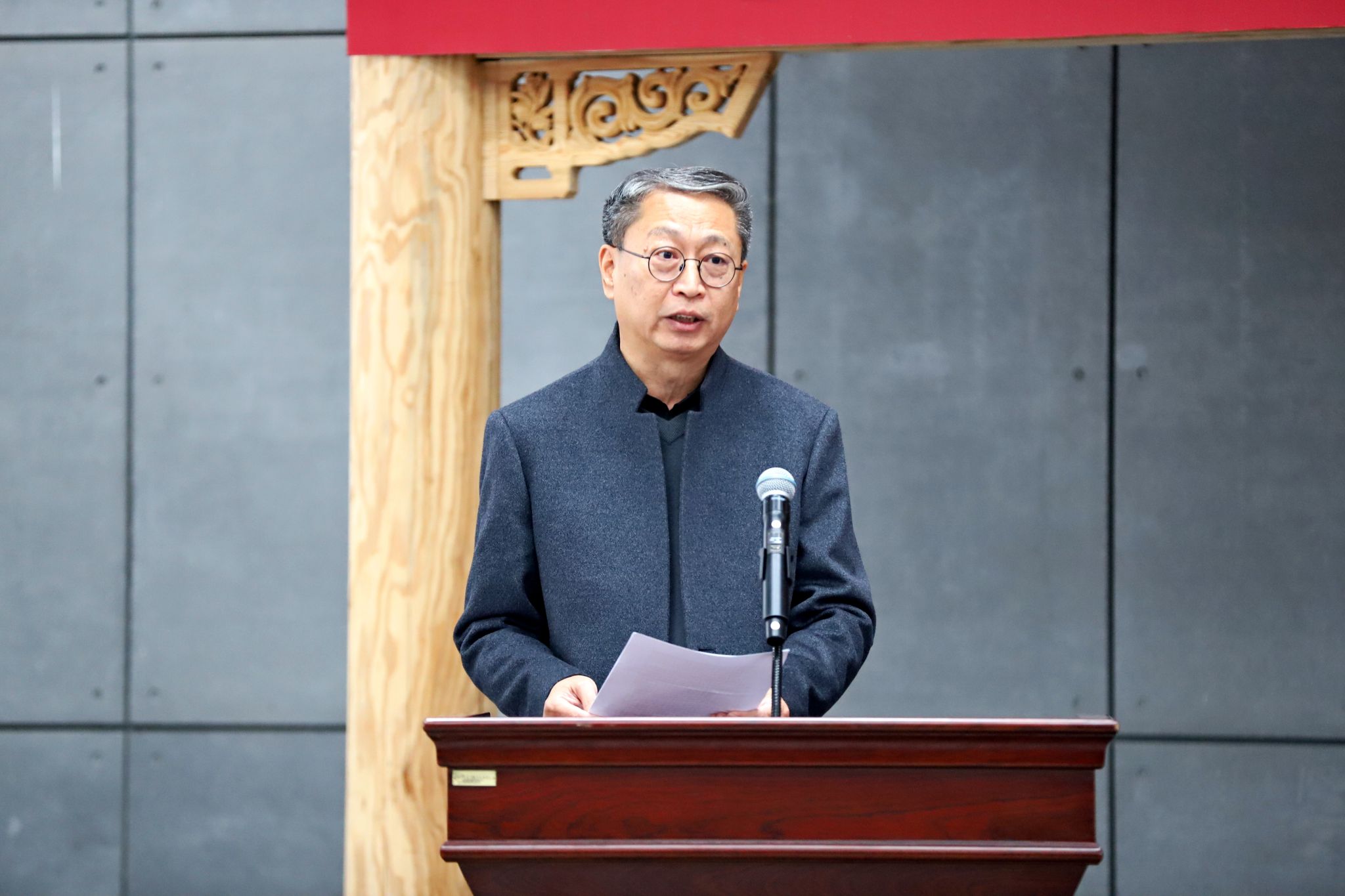 齐伟民介绍了本次展览的筹备初衷与核心理念。他从民盟文化传承、书法与建筑的美学同构、以及“道器合一”的哲学智慧三个维度,深入阐释了本次展览的深厚意涵。他指出,本次展览不仅是对民盟先贤“以墨载道”文化血脉的自觉传承,更是对书法与建筑这两种同源于中华文明的艺术形式进行的一次深度对话与融合实践。本次展览的成果将直接服务于学校“书法与建筑文化研究中心”的建设,旨在构建一个持续推动人文与科技、艺术与工程交叉融合的创新平台。