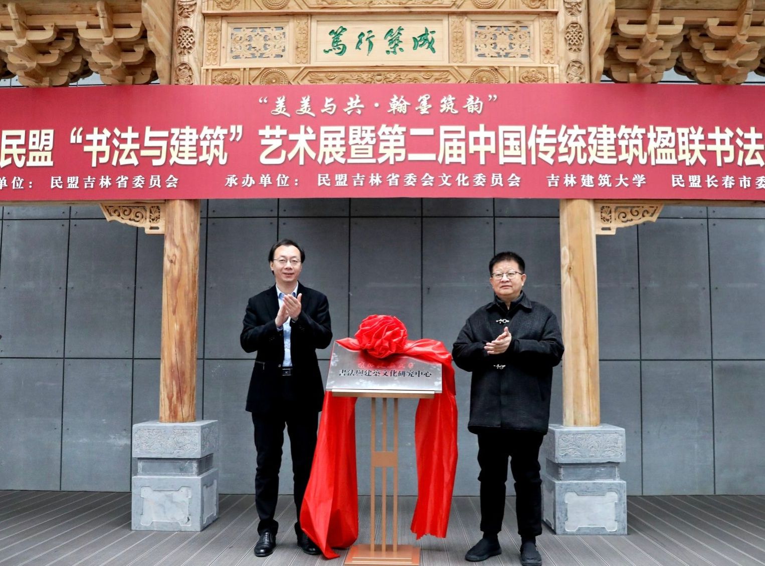 陈雷与曾来德共同为“吉林建筑大学书法与建筑文化研究中心”揭牌。