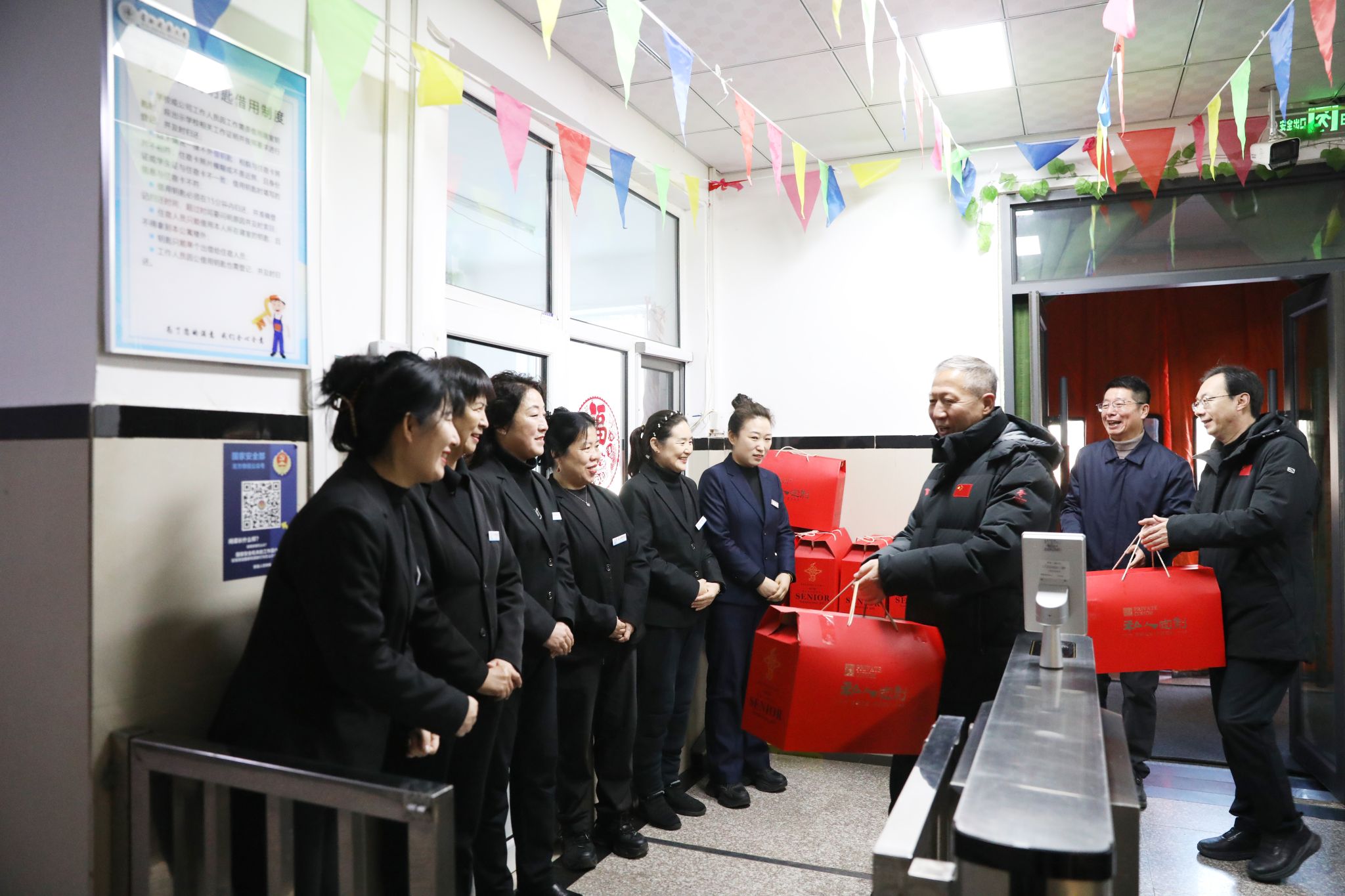 校领导一行先后前往行政楼值班室、变电所、学生第三公寓、第一食堂、学校西门门岗等重点区域,每到一处,都与在岗工作人员亲切握手、热情交谈,并送上装满关怀与祝福的新春慰问品,详细询问大家的值班值守安排、工作情况以及节日生活保障事宜。校领导对全体值守人员在万家团圆的除夕佳节,主动舍小家、顾大家,坚守岗位、默默奉献,全力守护校园正常运转的责任与担当给予高度肯定,并向大家及其家人致以最诚挚的节日祝福和衷心的感谢。