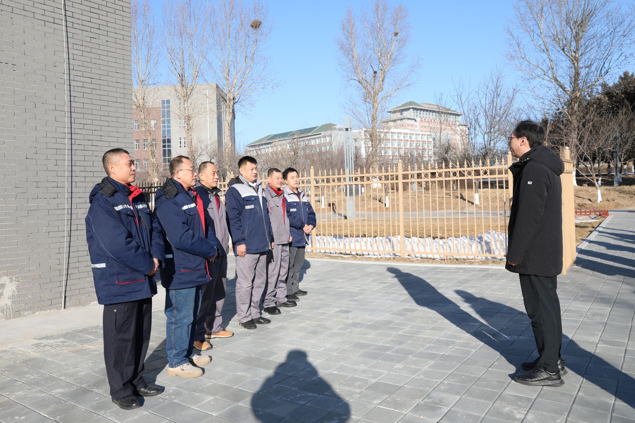 春启新程,岁暖情安。2026年2月16日除夕当天,学校党委书记李雁冰,党委副书记、校长陈雷,党委副书记张学建,副校长杨洪秀、齐伟民、王岩松,纪委书记、省纪委监委驻吉林建筑大学纪检监察组组长、党委副书记李岩峰一行,深入校园各值守岗位,走访慰问春节期间坚守一线、履职尽责的教职员工,向大家致以马年新春的美好祝福和诚挚问候。同时,为严格落实上级部署要求,同步开展校园重点部位安全检查。