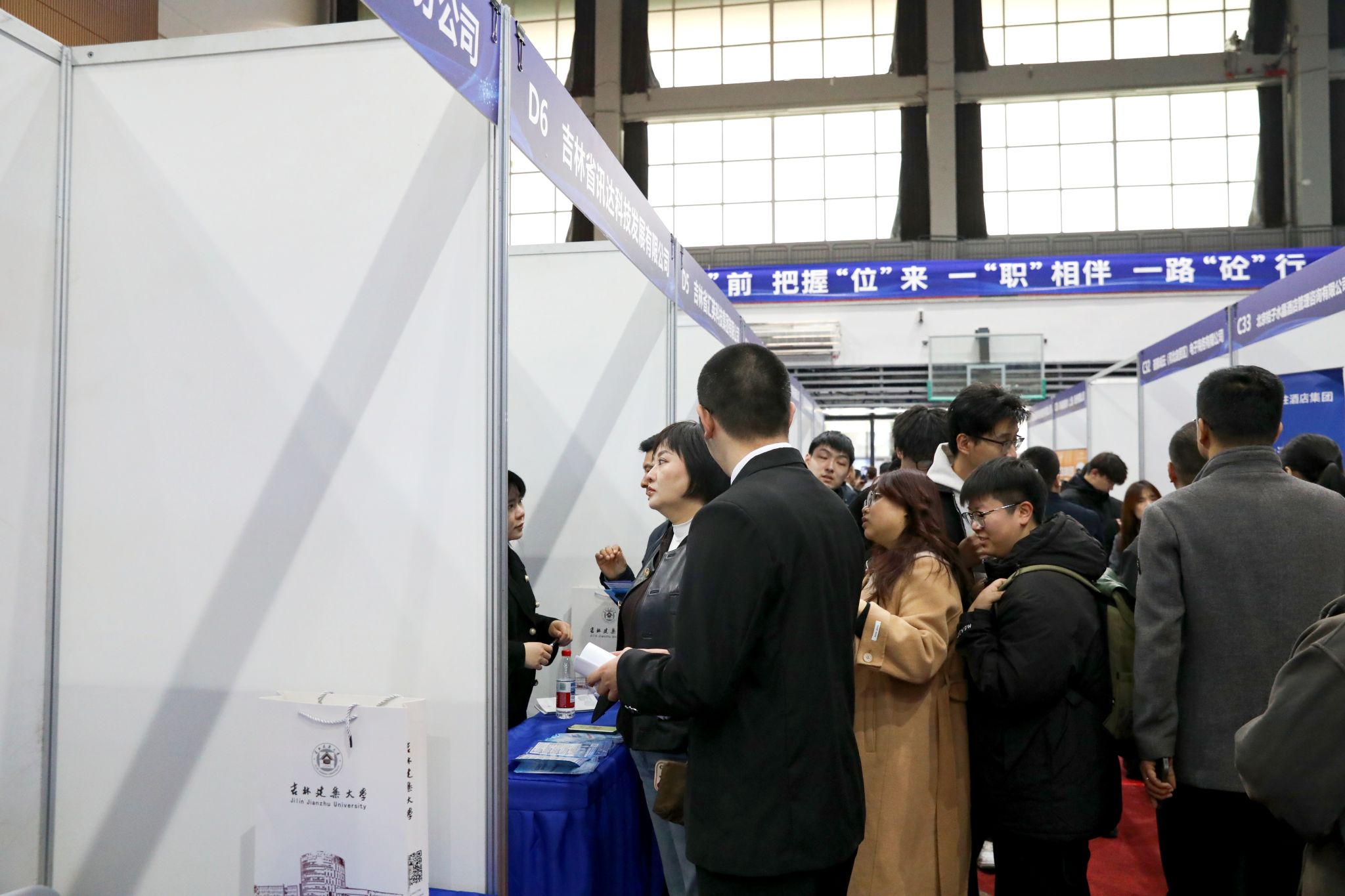 会前,学校多措并举、持续发力,广泛邀请用人单位来校参会。学校通过“线上+线下”相结合的方式,走访多地人才、人社、协会等相关单位。此次活动特邀8家单位由相关领导带队组团来校参加双选会,其中政府及地方人社部门包括长春市工商业联合会、净月区人力资源和社会保障局、通化市人才引进服务中心、白山市人社局及延吉市相关部门。此外,延吉市委组织部携27个公务员、事业编制岗位来校参会,同步开展政策宣传与岗位推介活动。北京市建设监理协会、吉林省勘察设计协会等重点行业协会参会,精准对接行业资源,紧扣建筑类人才供需洽谈会主题。