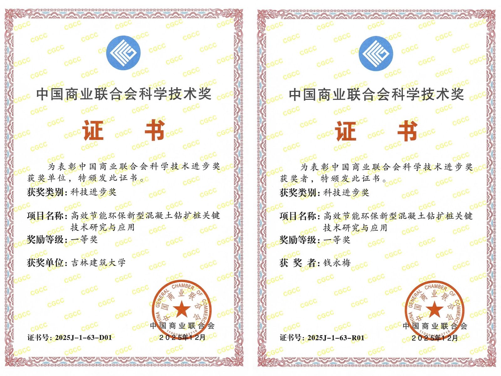 近日,学校钱永梅教授领衔的土木工程创新团队研发的“高效节能环保新型混凝土钻扩桩关键技术研究与应用”项目,凭借其卓越的创新性和显著的经济社会效益,荣获2025年度中国商业联合会科学技术进步一等奖。这是学校在土木工程绿色低碳领域斩获的国家一级行业协会重要荣誉,标志着学校在新型桩基工程技术领域的研究成果达到国际先进水平。
