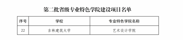 近日,吉林省教育厅发布了《关于公布第二批省级专业特色学院建设项目名单的通知》,学校艺术设计学院入选第二批省级专业特色学院建设项目。目前,学校共获批2个省级专业特色学院。