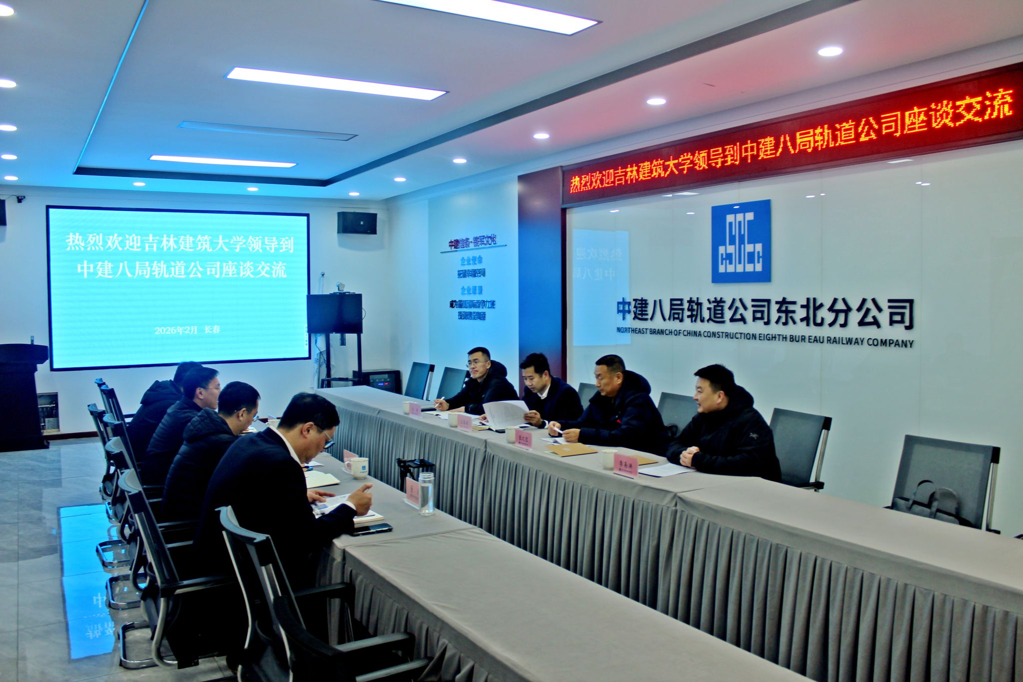 2月6日,招生与就业工作处处长王春来带队走访中建八局轨道公司东北分公司,与公司人力资源部负责人赵磊、东北公司总工程师吴松华等相关部门负责人进行座谈交流,王春来向企业介绍了学校近年来在教育教学改革、专业建设、学生培养等方面取得的成绩,以及学校在就业工作中的具体举措。企业负责人对学校毕业生的综合素质和专业能力给予了充分肯定,并表达了与学校开展更广泛、更深入合作的意愿。双方就学生实习、就业、人才供需等方面进行了详细交流,并就进一步加强合作达成共识。