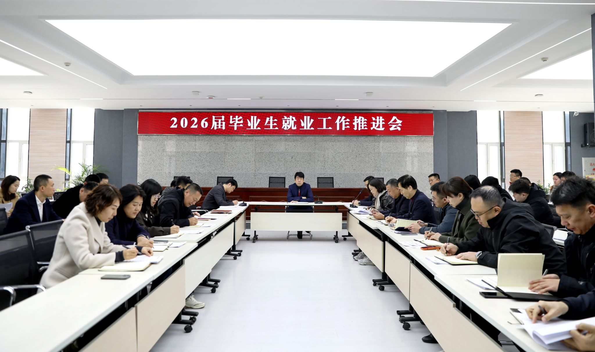 各学院党委(总支)书记、副书记,全体2026届毕业班辅导员,招生与就业工作处相关人员参加会议。